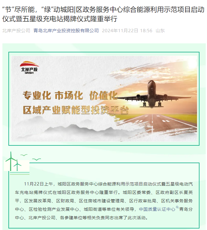 以下是來自青島北岸產業投資控股有限公司的報道: