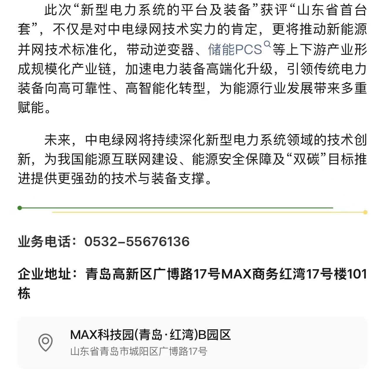 2025年10月30日,青島高新公眾號發布一篇“中電綠網:山東省首臺套創新成果助力“數字能源”高質量發展”報道,具體內容如下: